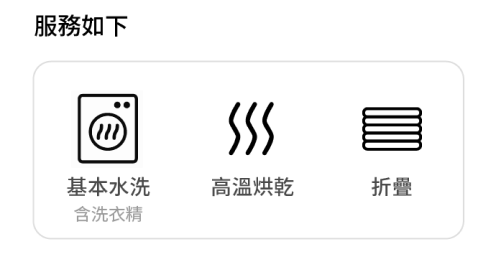 3小時洗烘後送回,送洗袋由我們提供,本服務不提供乾洗、衣物熨燙